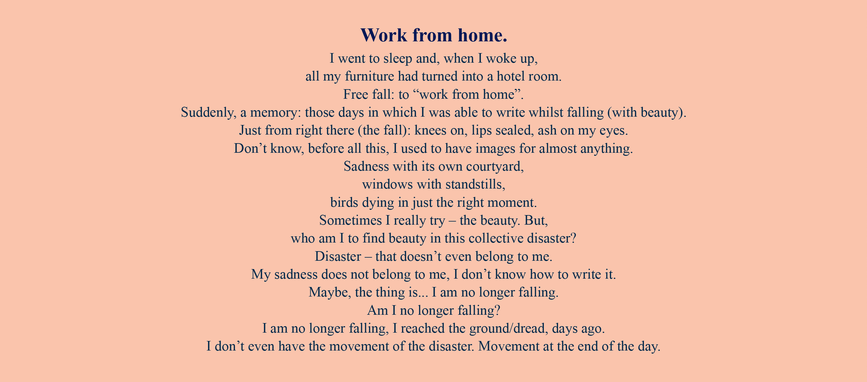 Work from home draws together visuals by Yarli Allison and text by Letizia Miro, presenting sex as work by criticising the repetitive nature of work. Offering a sex worker’s first person view, the work brings visibility to a group whose voices are traditionally excluded from mainstream cultural channels.